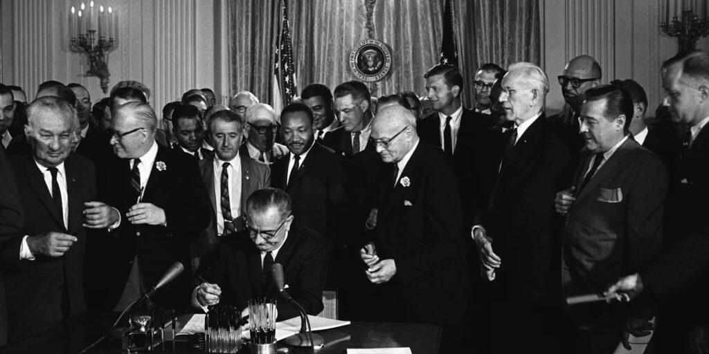 Then President Lyndon B. Johnson signed Executive Order 11246. Without a constitutional amendment and without congressional redesign of the Civil Rights Act, an administrative layer was added, introducing “affirmative action” and expanding coverage to aggregated “minority” categories. Executive Order 11246 required that every federal contract include this clause: